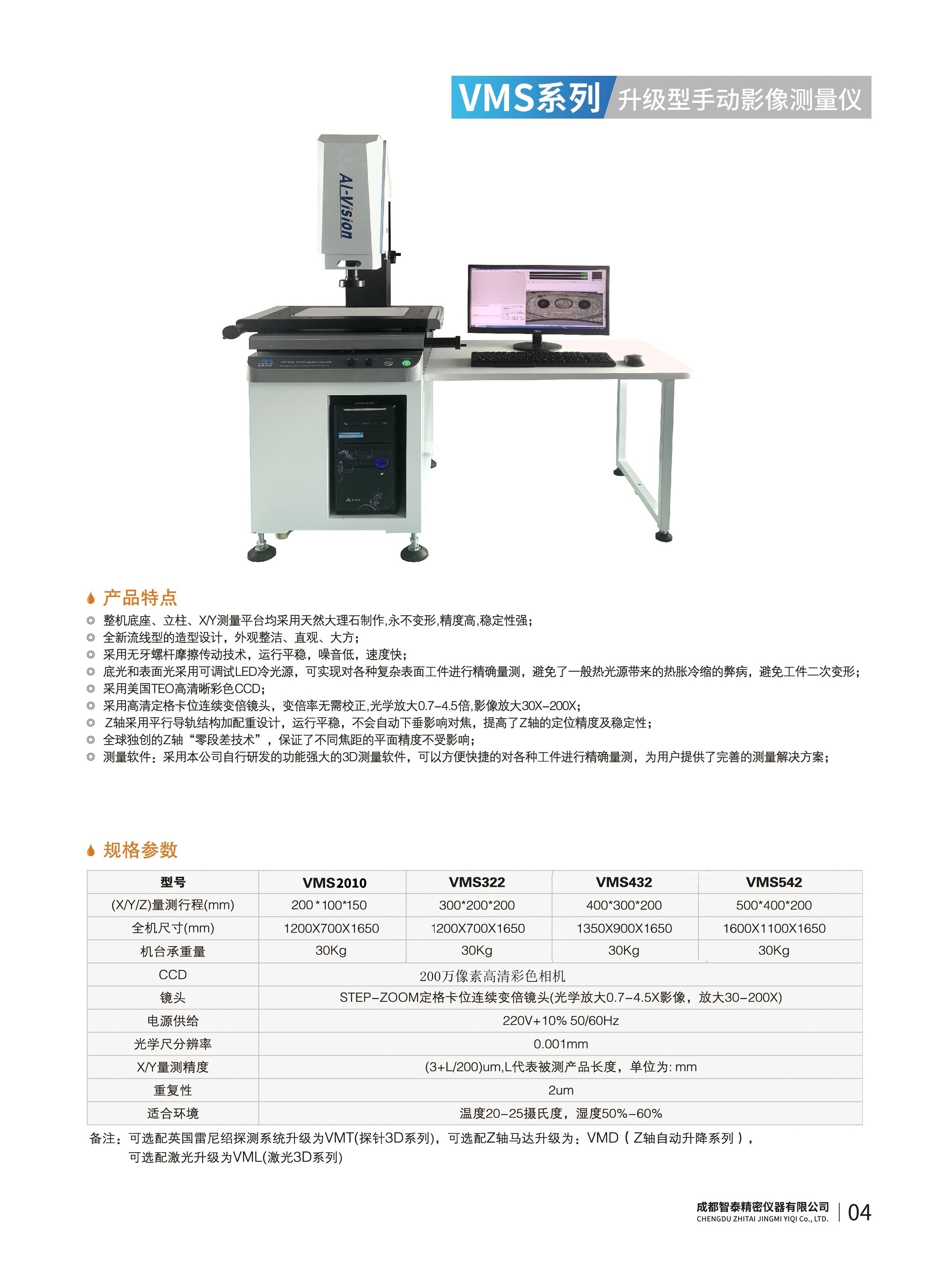 成都智泰精密儀器有限公司專注于精密測量儀器,人工智能,智能制造領(lǐng)域,專業(yè)從事智能視覺自動化檢測解決方案的貿(mào)易型企業(yè)。公司成立于2011年,位于天府之國成都,現(xiàn)有行業(yè)精英十余人,辦公倉儲面積200余平米。 公司主要產(chǎn)品為精密光學影像測量儀,精密輪廓形狀測量儀,精密機器人定位系統(tǒng),精密智能視覺尺寸檢測儀器,精密表面缺陷智能檢測設(shè)備,工業(yè)工程特種機器人。 公司憑借過硬的技術(shù)實力和產(chǎn)品方案,率先進入智能視覺自動化檢測領(lǐng)域,推廣以精密智能視覺自動化檢測為基礎(chǔ)的機器人自動化應用,公司不斷整合上下游的資源,擁有巨大的全產(chǎn)業(yè)鏈優(yōu)勢。客戶群體覆蓋了我國精密制造業(yè)的多數(shù)領(lǐng)域,包括航空、航天、軍工、汽車、新能源、光伏、食品,精密電子、精密機械、模具、PCB、LCD、五金、塑膠、醫(yī)療、教育、計量及科研院所等行業(yè)。 公司創(chuàng)新的產(chǎn)品能滿足生產(chǎn)與制造行業(yè)客戶的要求,訓練有素的工程師能及時提供多種技術(shù)服務,如解...